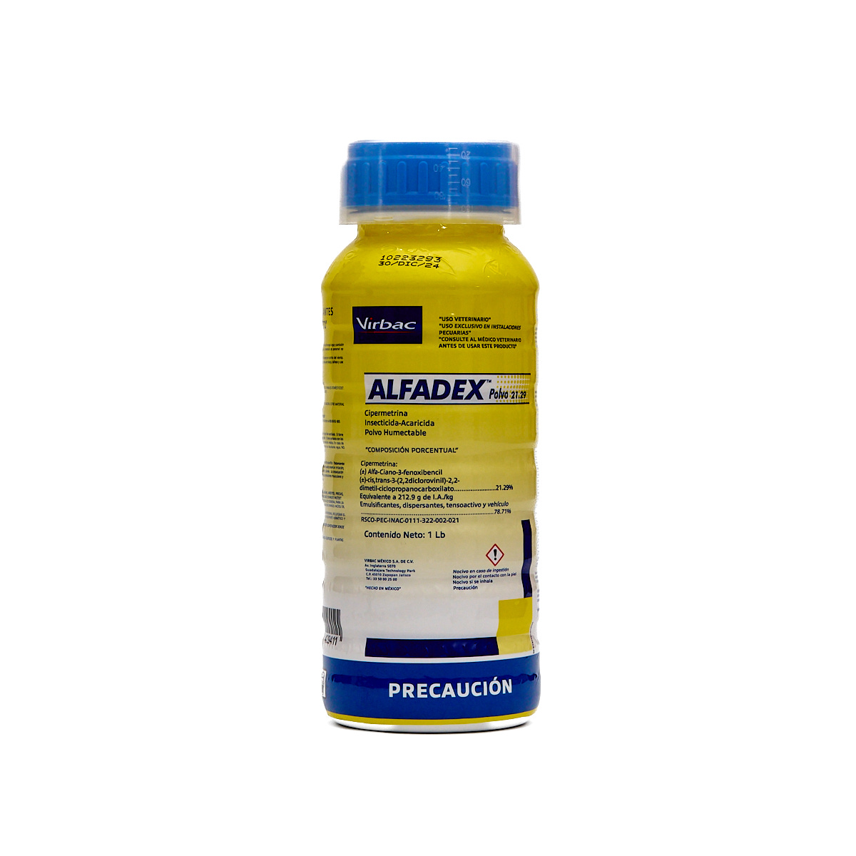 Alfadex Polvo, es un insecticida acaricida en formulación polvo humectable para uso en bovinos, ovinos, caprinos, cerdos, aves y perros, así como en instalaciones pecuarias. Está indicado para el control de infestaciones de ectoparásitos en los animales domésticos: piojos, pulgas, ácaros y garrapatas únicamente de los géneros Rhipicephalus spp, Dermacentor spp, Ixodes spp y Anocentor spp. Así mismo, para el control en las instalaciones pecuarias de los ectoparásitos, insectos voladores e insectos rastreros.