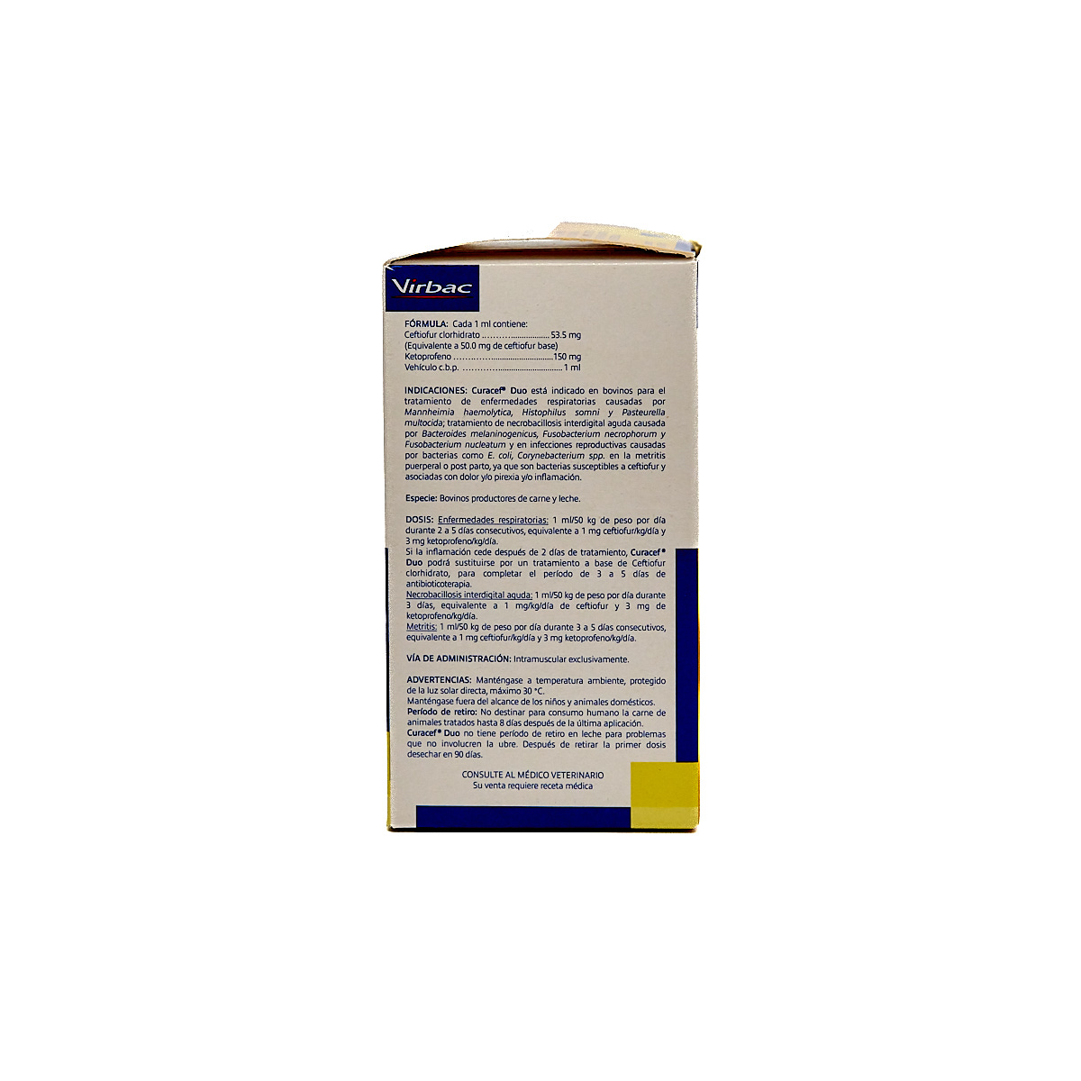Indicado en bovinos para el tratamiento de enfermedades respiratorias causadas por Mannheimia haemolytica, Histophilus somni y Pasteurella multocida; tratamiento de necrobacillosis interdigital aguda causada por Bacteroides melaninogenicus, Fusobacterium necrophorum y Fusobacterium nucleatum, y en infecciones reproductivas causadas por bacterias como E. coli, Corynebacterium spp. en la metritis puerperal o post parto, ya que son bacterias susceptibles a ceftiofur y asociadas con dolor y/o pirexia y/o inflamación.