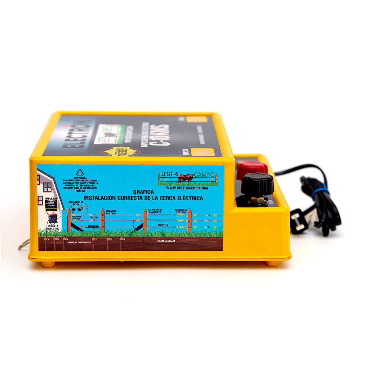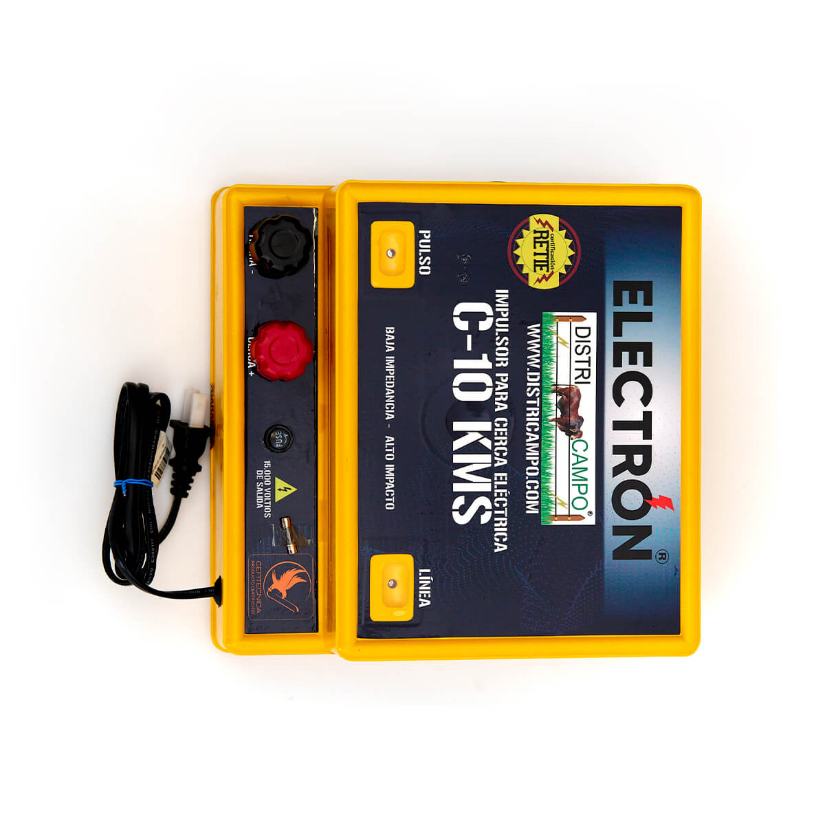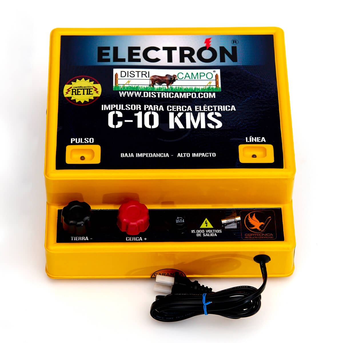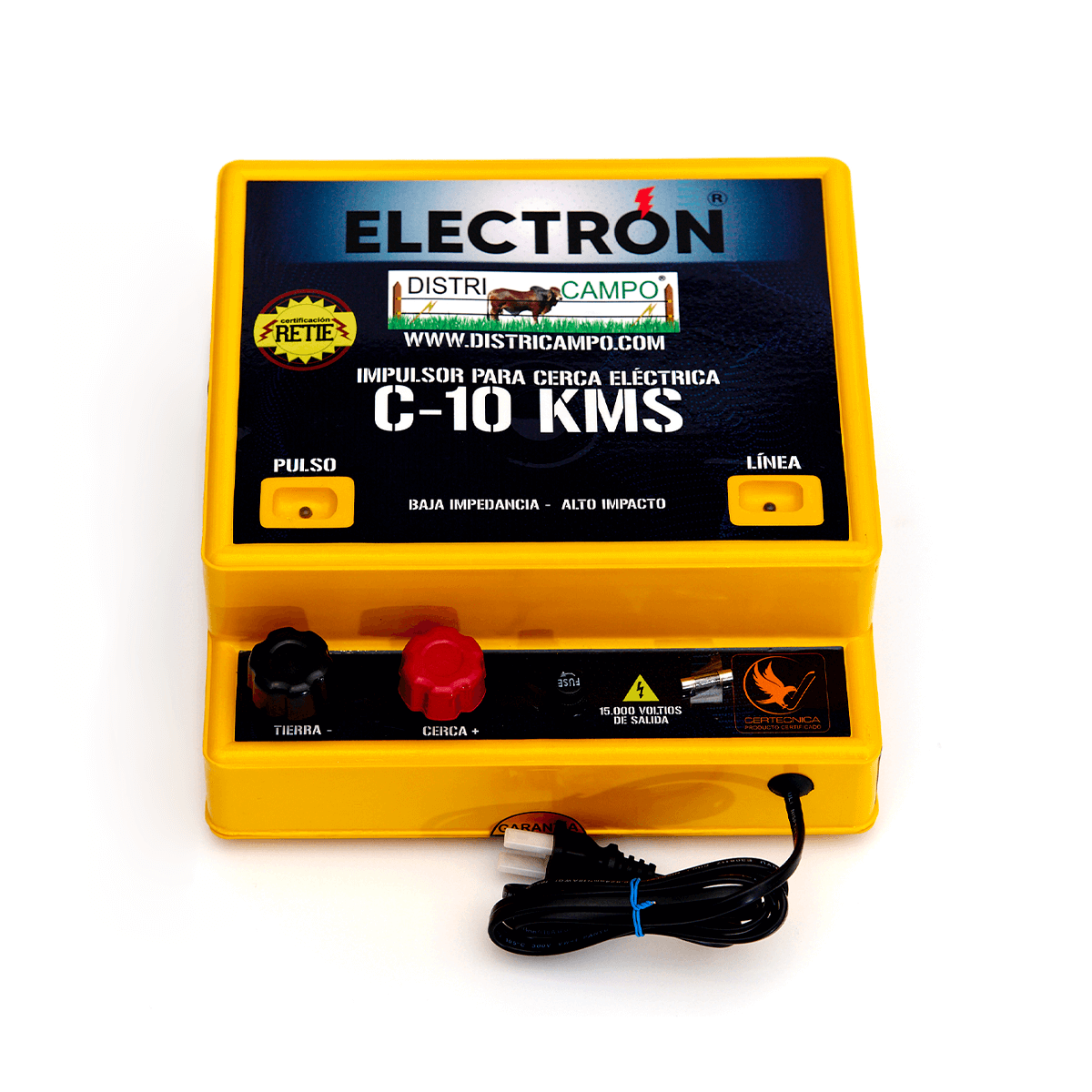 El impulsor es el encargado de energizar la cerca eléctrica mediante impulsos intermitentes hasta 15.000 voltios.