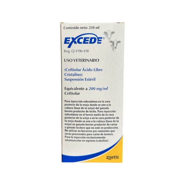 Suspensión estéril lista para usar que contiene ceftiofur ácido libre cristalino, una cefalosporina de amplio espectro con acción bactericida contra bacterias grampositivas y gramnegativas. Mantiene niveles terapéuticos por más de 7 días, ideal para el control y tratamiento del Complejo Respiratorio Bovino (CRB) en ganado de alto riesgo asociado con Mannheimia haemolytica, Pasteurella multocida e Histophilus somni. Presentacion: 250ml