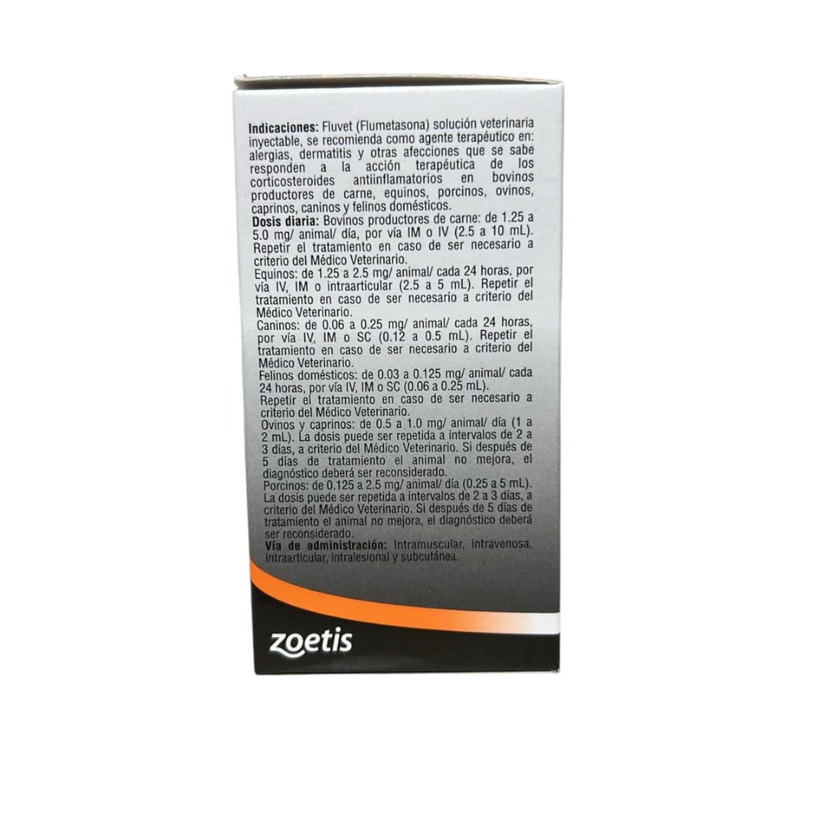 Fluvet® (Flumetasona) es una solución inyectable veterinaria con acción corticosteroide antiinflamatoria, recomendada para el tratamiento de alergias, dermatitis y otras afecciones inflamatorias en equinos, caninos y felinos. Ofrece un alivio rápido y eficaz de los síntomas asociados a procesos alérgicos e inflamatorios. Presentacion: 50ml Peso 118gr