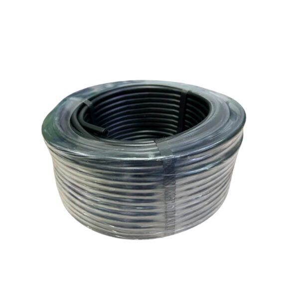Aislador de paso fabricado en material plástico con estabilización UV, fácil de instalar en estacones intermedios mediante grapas, con resistencia de 15.000V y diámetro interno de 4mm y externo de 8mm. Rollo con Daiametro 97cm Rollo de 50 metros