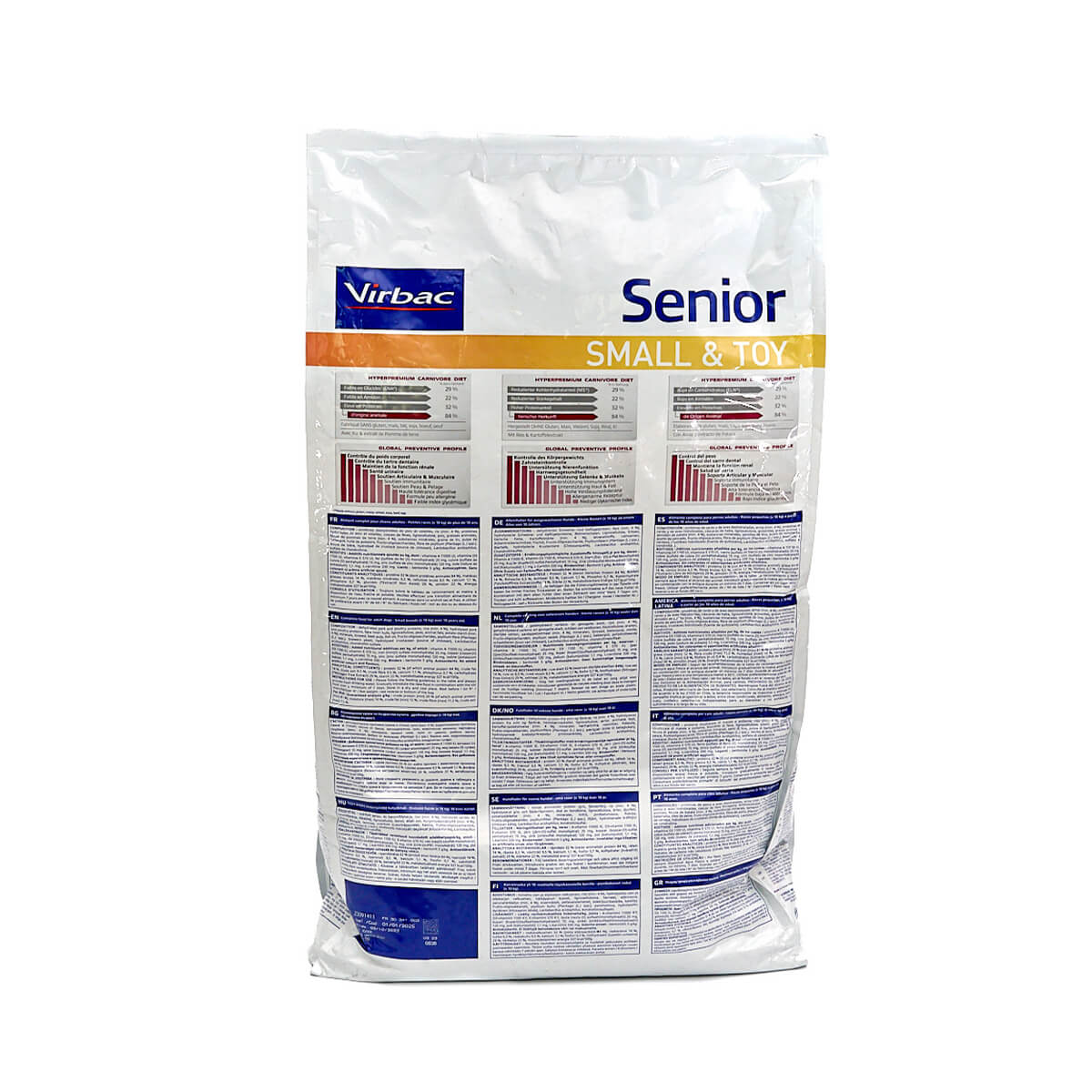 • De razas miniatura (< 5 kg) a partir de los 12 años de edadComposición: Proteínas de cerdo y de aves deshidratadas, arroz de (mínimo 4%), proteínas de cerdo y de aves hidrolizadas, vainas de haba, lignocelulosa, guisantes, grasas animales, almidón de patata (mínimo 4 %), minerales, linaza, pulpa de remolacha, aceite de pescado, fibra de psyllium (Plantago (L.) spp.), fructooligosacáridos, levadura de cerveza, crustáceos hidrolizados (fuente de quitosán), Lactobacillus acidophilus, condroitín sulfato.