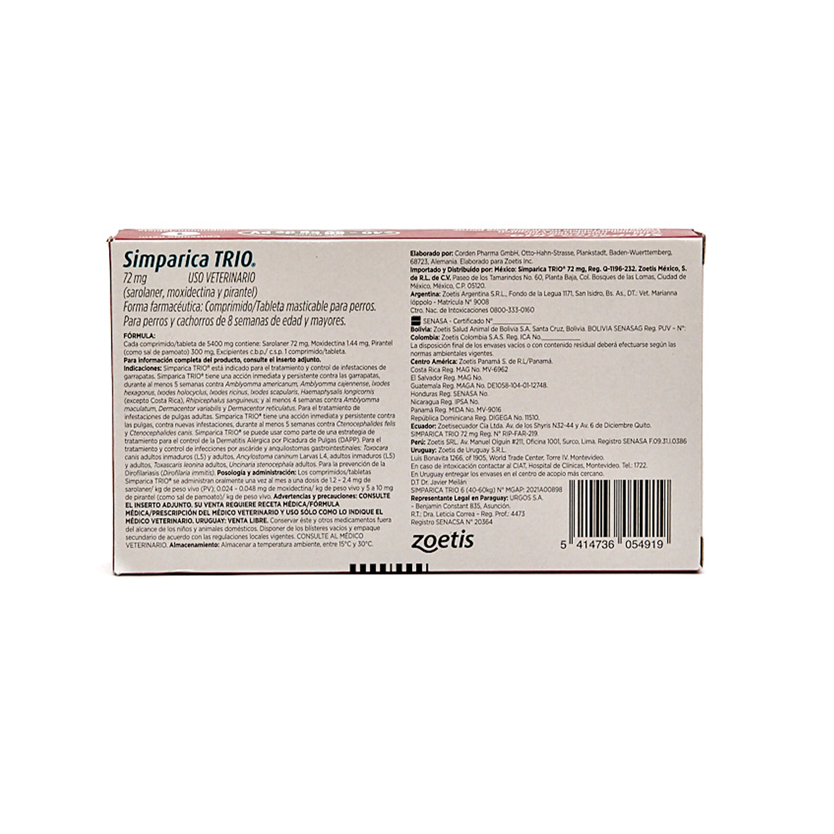 SIMPARICA TRIO 1 TAB 72 MG (40-60 KGS) Café